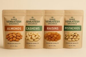 At Shree Venkatesh Organics, we bring you a handpicked selection of the finest dry fruits sourced from trusted farms and growers across India and abroad. Our dry fruits are carefully chosen, hygienically processed, and packed with utmost care to retain their natural taste, rich aroma, and high nutritional value.
